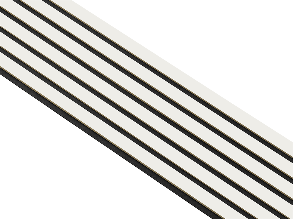 Akustikpaneler i almindelig kerne hvid malet - vælg mellem forskellige farve filt - Mål: 16 × 300 × 2780 mm - Sort filt er i restordre og sendes så snart den er på lager igen.