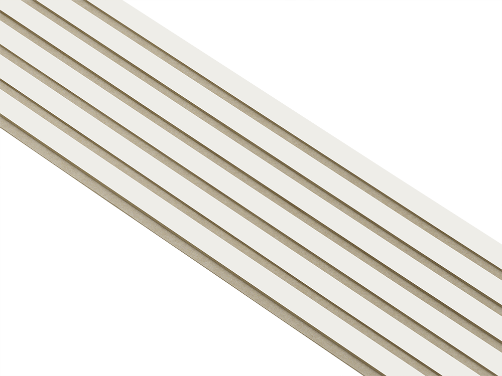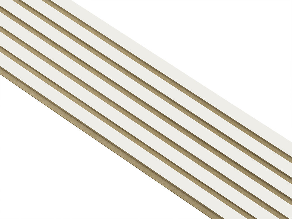 I-Wood Basic akustikpanel i MDF krono grundier med almindelig kerne. Den hvide maling giver et rent og tidløst udtryk, mens den grå filt tilføjer en rolig kontrast, der passer perfekt til både moderne og klassiske indretninger.