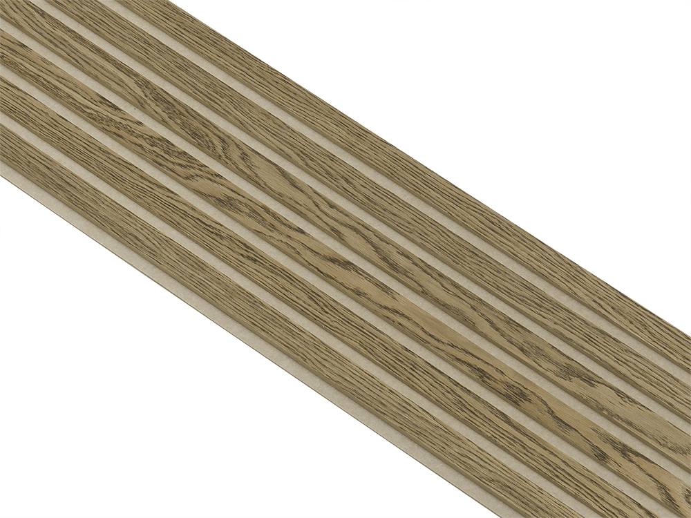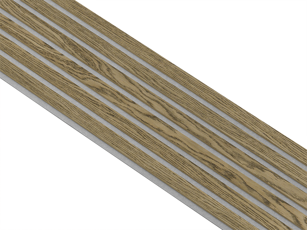 Akustikpaneler i almindelig kerne i mørkebrun oliering - vælg mellem forskellige farve filt - Mål: 16 × 300 × 2780 mm