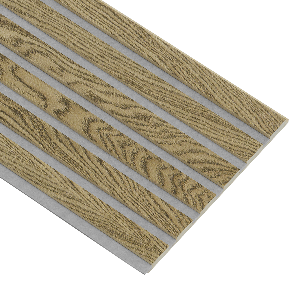 I-Wood Basic akustikpanel i MDF med egefinér og almindelig kerne. Mørkebrun oliering fremhæver egetræets naturlige struktur og giver et eksklusivt look. Den grå filt skaber et harmonisk samspil, som giver et tidløst og stilrent udtryk.