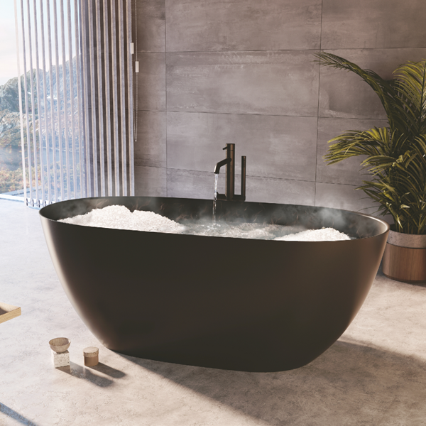 Arden fritstående badekar 1600x740mm, MAT SORT, Velsten støbemarmor to ryglæn u. overløb