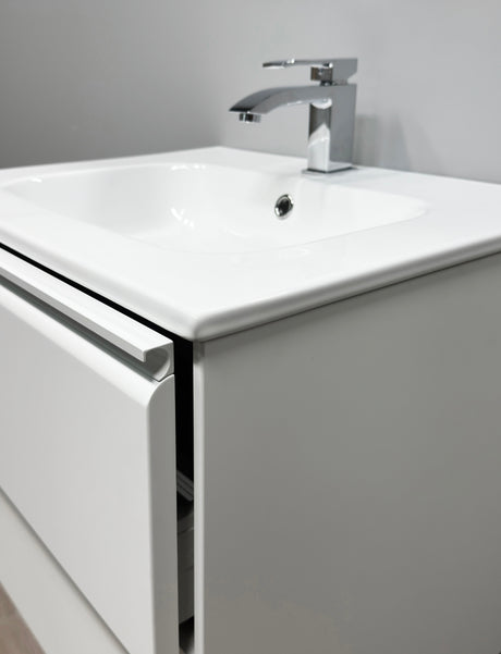Nordskab badsæt i Mat hvid - bredde 60 cm med Solid Surface badborplade