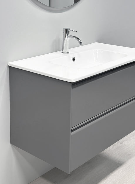 Nordskab badsæt i Grå - bredde 80 cm med Solid Surface badborplade