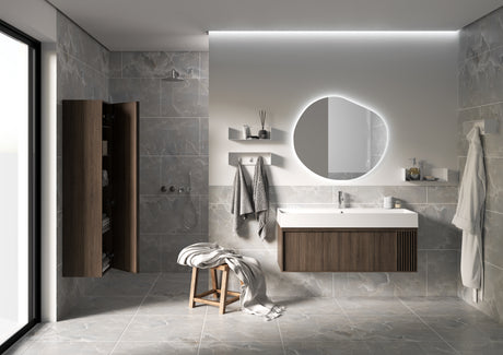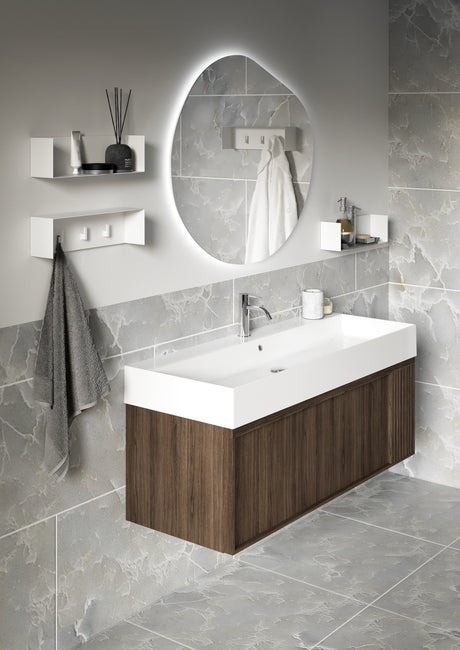 Nordskab badsæt i røget eg finer med ril - bredde 100 cm med porcelænsvaske badborplade