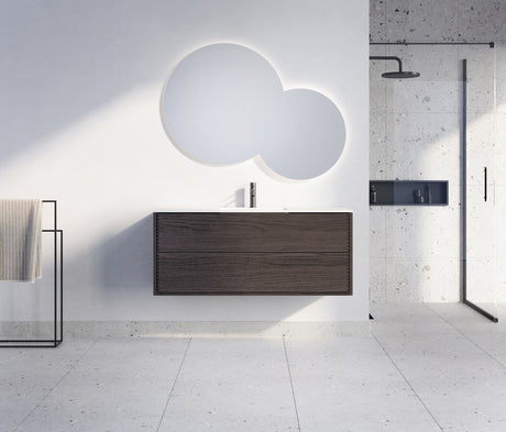 Nordskab badsæt i røget eg finer med ril - bredde 120 cm med porcelænsvaske badborplade