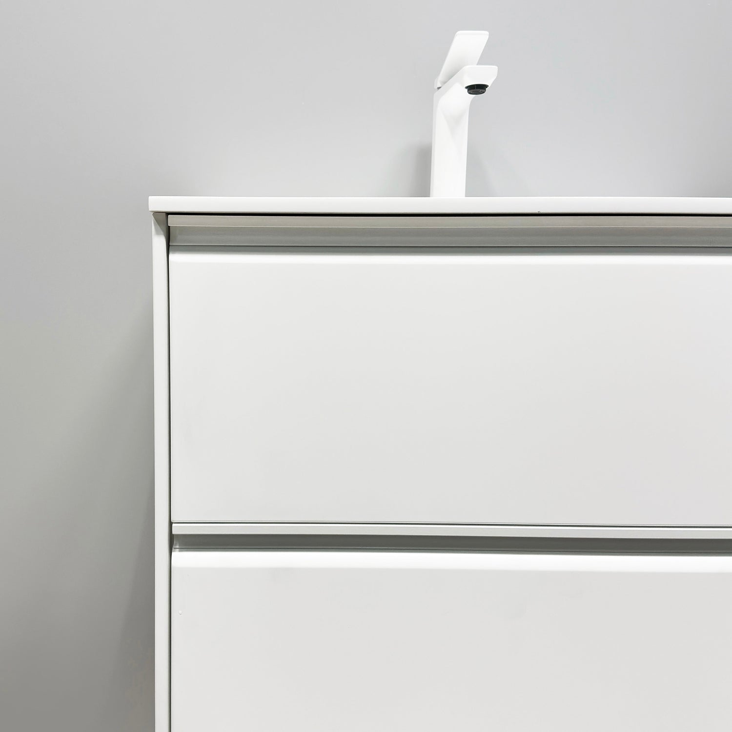 Nordskab badsæt i Mat hvid - bredde 80 cm med Solid Surface badborplade