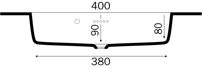 Med et kummemål på 40 x 30 cm og en dybde på 9 cm er denne model ideel til mindre badeværelser. Vasken kræver en minimum pladedybde på 46,5 cm og passer perfekt til et 50 cm skabselement – praktisk uden at gå på kompromis med design.