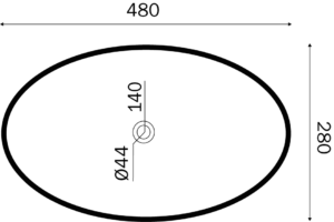 Denne elegante vask har et kummemål på 48 x 28 cm og en dybde på 9 cm. Den kræver en minimum pladedybde på 46,5 cm og passer perfekt til et 60 cm skabselement – en praktisk løsning til det moderne badeværelse.