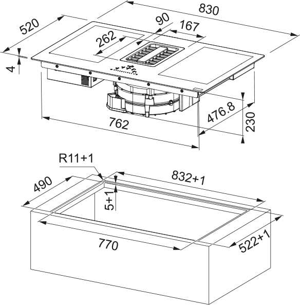 MARIS2GETHER FMA 839 HI - Induktionskogeplade med integreret emhætte