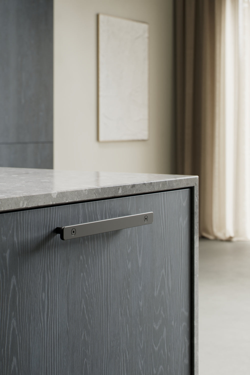 Et greb der udstråler et råt og industrielt udtryk og tilføjer karakter til ethvert rum. Dens karakteristiske kærv i metal, fremkalder minder om gamle dage og klassiske funktionelle møbelknopper. Designet er nøje afstemt med fokus på funktionalitet, og den afrundede bagside sikrer en behagelig og ergonomisk håndtering.