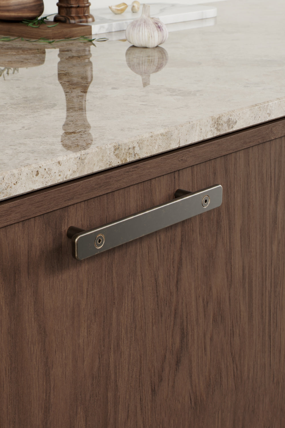 Et greb der udstråler et råt og industrielt udtryk og tilføjer karakter til ethvert rum. Dens karakteristiske kærv i metal, fremkalder minder om gamle dage og klassiske funktionelle møbelknopper. Designet er nøje afstemt med fokus på funktionalitet, og den afrundede bagside sikrer en behagelig og ergonomisk håndtering.