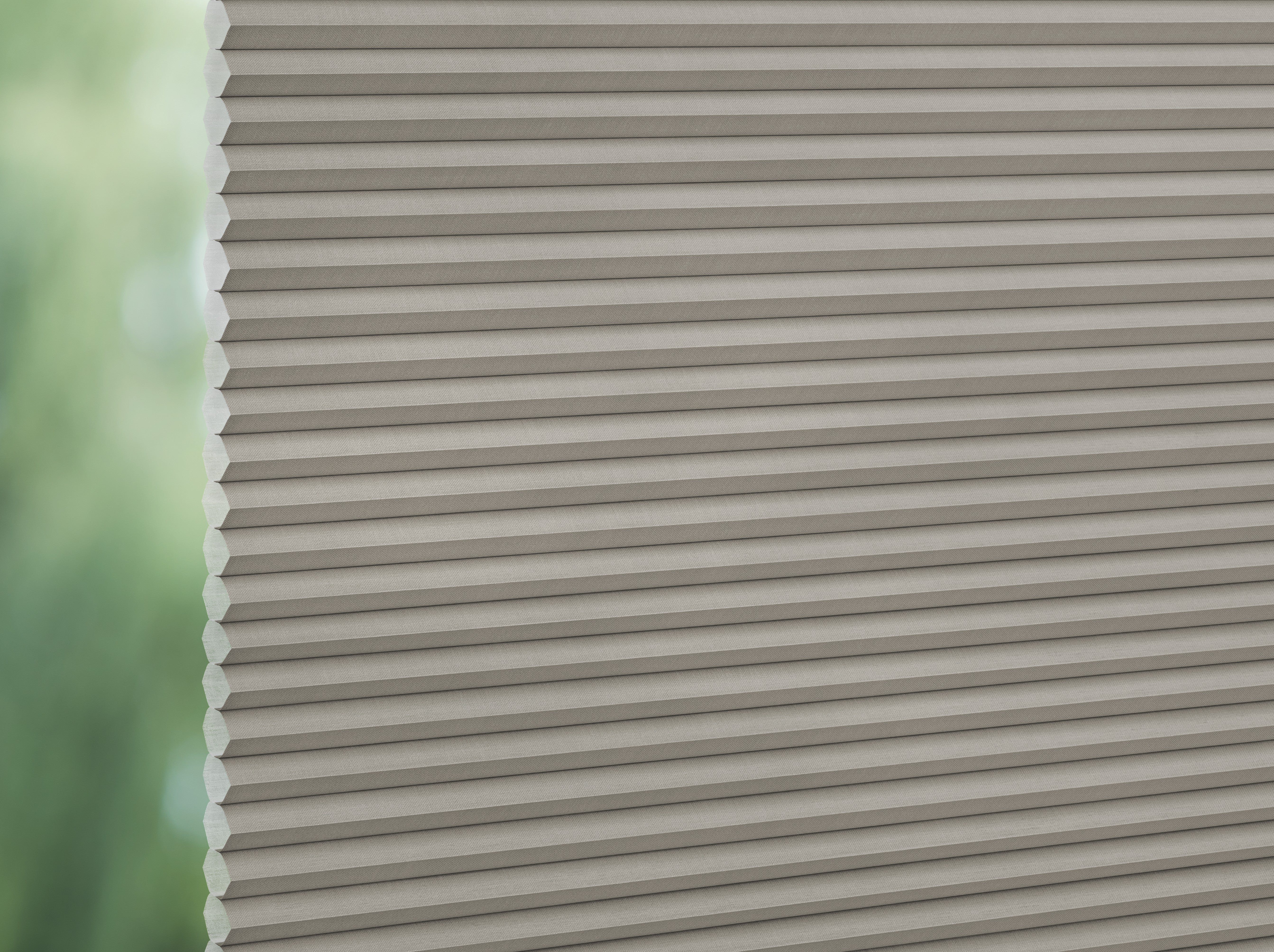 Duette® gardiner er skabt med to lag stof, der danner en unik luftlomme mellem lagene. Denne struktur fungerer som naturlig isolering – den hjælper med at holde kulden ude om vinteren og varmen ude om sommeren, så dit hjem får et mere behageligt og energieffektivt indeklima året rundt.