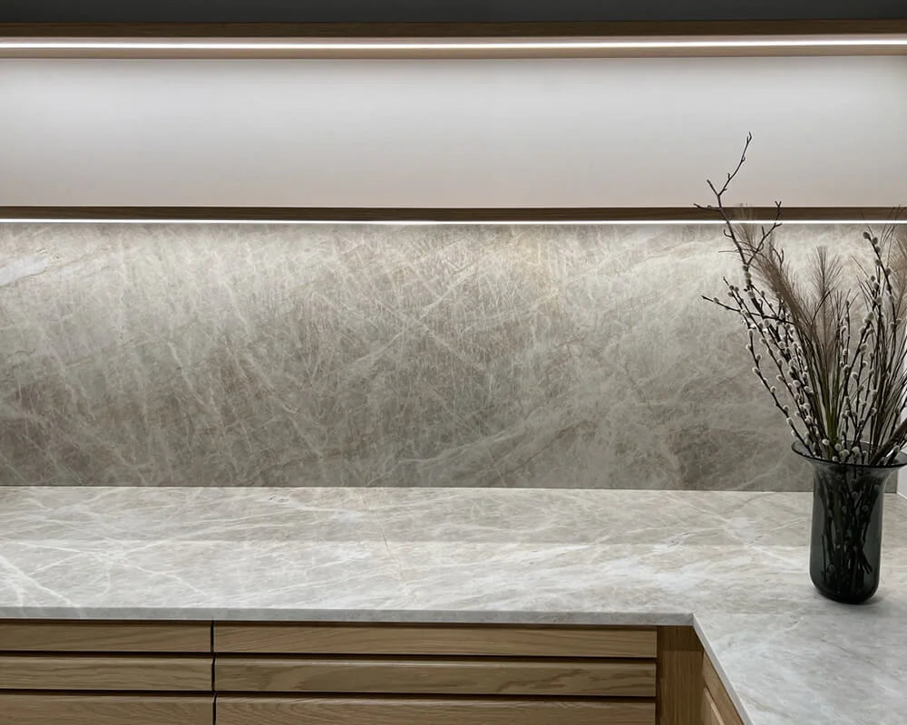 Granit er naturens eget mesterværk. De naturligt forekommende sandhuller og mineraler giver hver eneste bordplade et unikt og autentisk udtryk – ingen to er ens. Det er netop disse detaljer, der gør granit til et af de mest eftertragtede materialer i moderne køkkener.