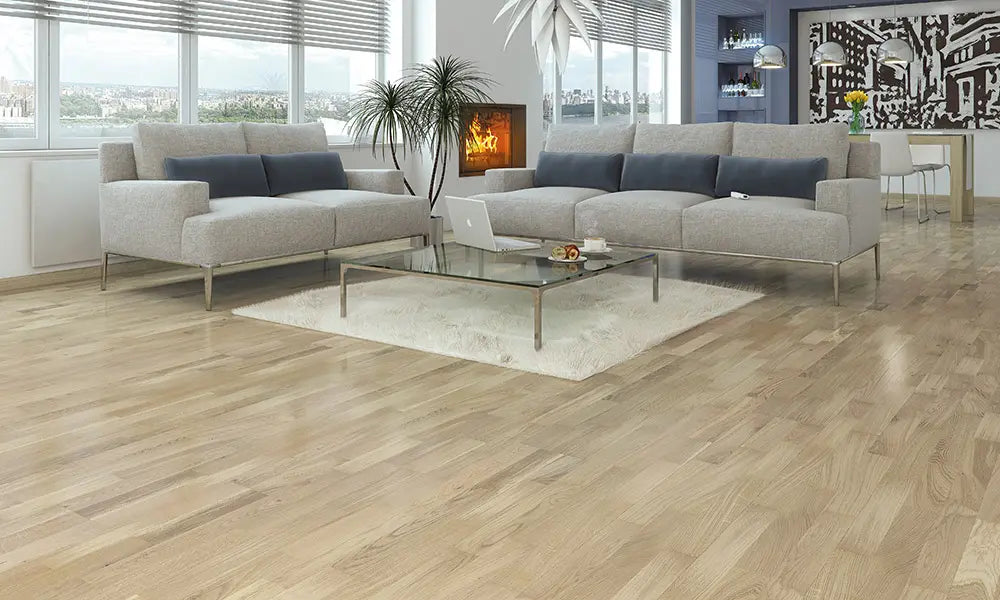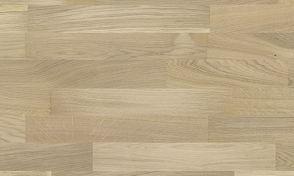 Lyst 3-stavs lamelparket i eg, som er klassisk og tidsløst. Rustik sortering, som giver lamellerne et naturligt og varierende farvespil. Overfladen er behandlet med hvid matlak, som får gulvet til at fremstå lyst og naturligt, og gør gulvet let at vedligeholde. 5G kliksystem for hurtig montering. Lægges svømmende uden brug af lim. Ønskes fuldlimning: Anvend Wallmann Parketlim.