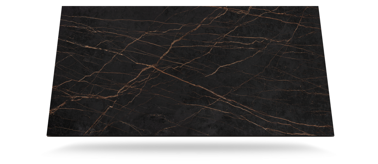 Laurant Matte har et eksklusivt marmorlook i dybe, mørke brunlige toner med elegante gyldne årer. Overfladen skaber et varmt og luksuriøst udtryk, ideelt til moderne og sofistikerede køkkener. En dristig og storslået designflade.