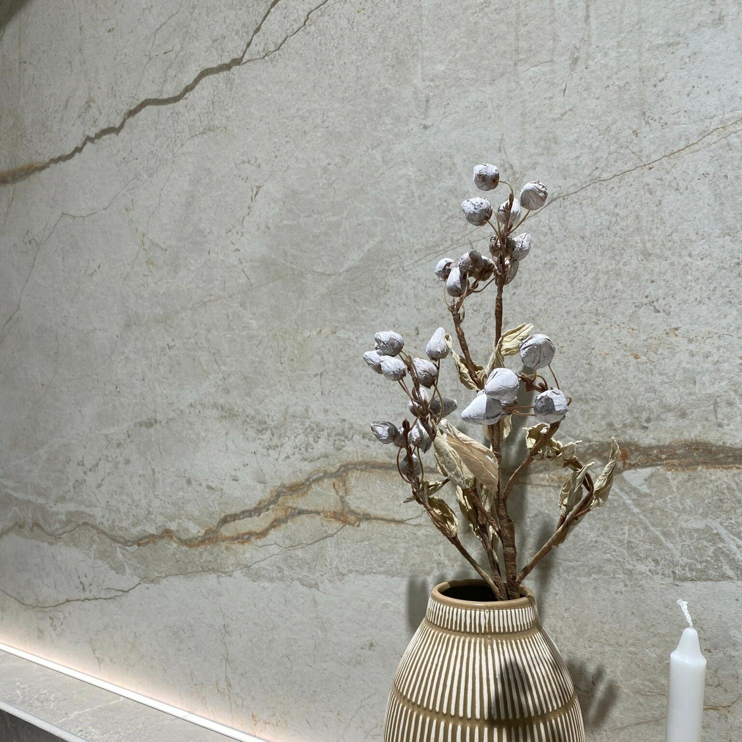 White Silver Root er en lys, elegant marmoroverflade med fine grå årer og varme nuancer. Overfladen skaber et eksklusivt og harmonisk udtryk, der passer perfekt til både lyse og moderne køkkener. Et luksuriøst, men roligt marmorlook med naturtro detaljer.