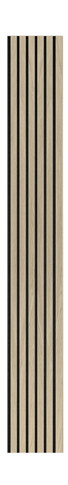I-Wood Basic akustikpanel i MDF med egefinér og almindelig kerne. Panelet er natur (ubehandlet) med sort filt, der giver et stilrent og moderne udtryk.