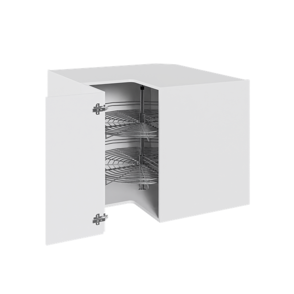 Et praktisk og funktionelt hjørneskab, der giver dig maksimal udnyttelse af pladsen i køkkenet. Skabet leveres inklusive 2 stk. ¾ karruselhylder, som gør det nemt at organisere og få adgang til gryder, skåle og køkkenudstyr – perfekt til effektiv opbevaring i hjørner.