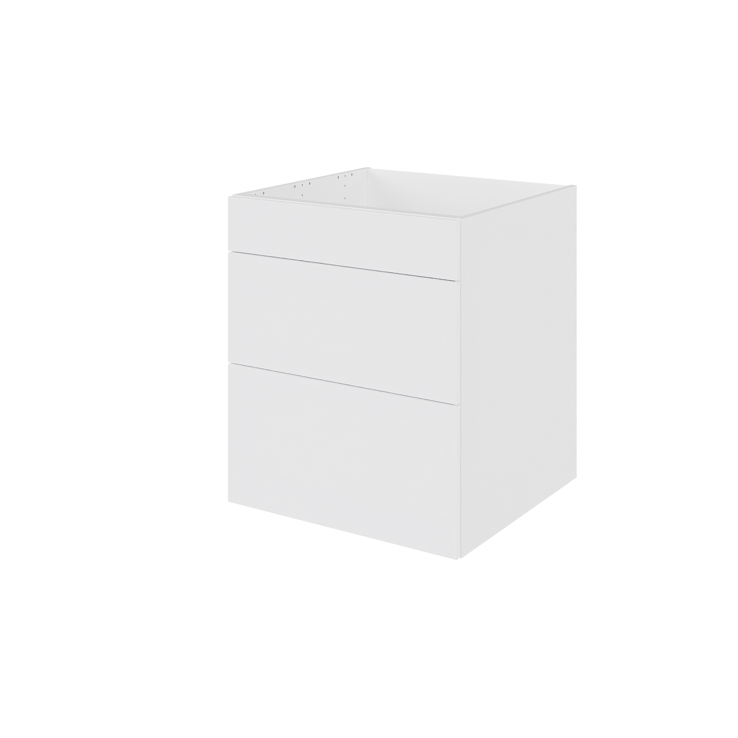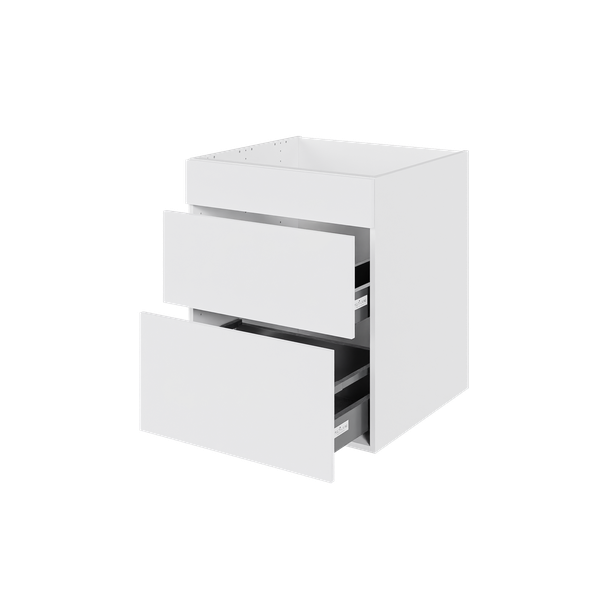 Den øverste skuffe har udskæring til afløb, så der er plads til vaskens installation. Begge skuffer har en dybde på 50 cm og en bæreevne på op til 40 kg pr. skuffe.