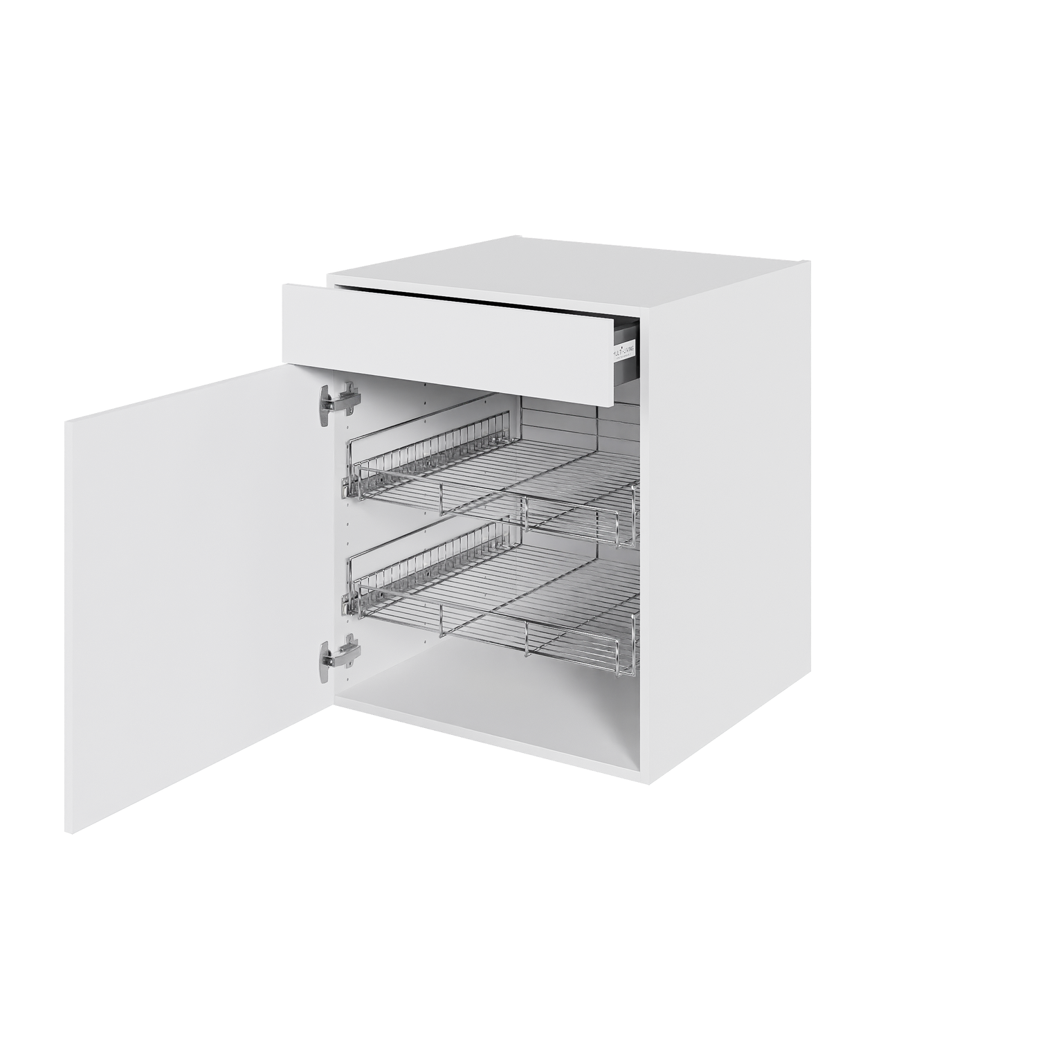 Multi-Living Køkken grydeskab i Hvid Front underskab H: 70,4 cm D: 60,0 cm - 2 udtræksriste 1 låge og 1 skuffe med deludtræk og softluk - Bredde: 60 cm er i restordre og sendes så snart den er på lager igen.