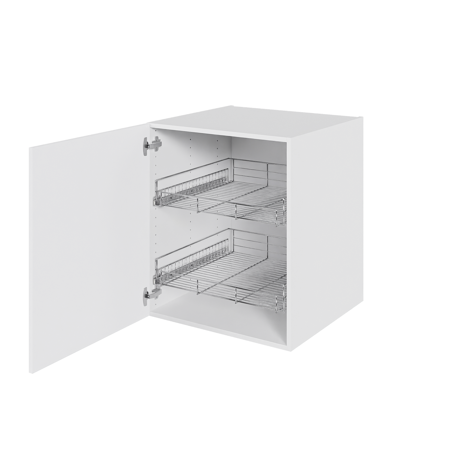 Et praktisk og funktionelt grydeskab med 2 udtræksriste, der giver dig et perfekt overblik og nem adgang til dine gryder, låg og køkkenredskaber. De udtrækkelige riste gør det let at udnytte skabets fulde dybde – ideelt til det moderne køkken, hvor både orden og kvalitet er i fokus.