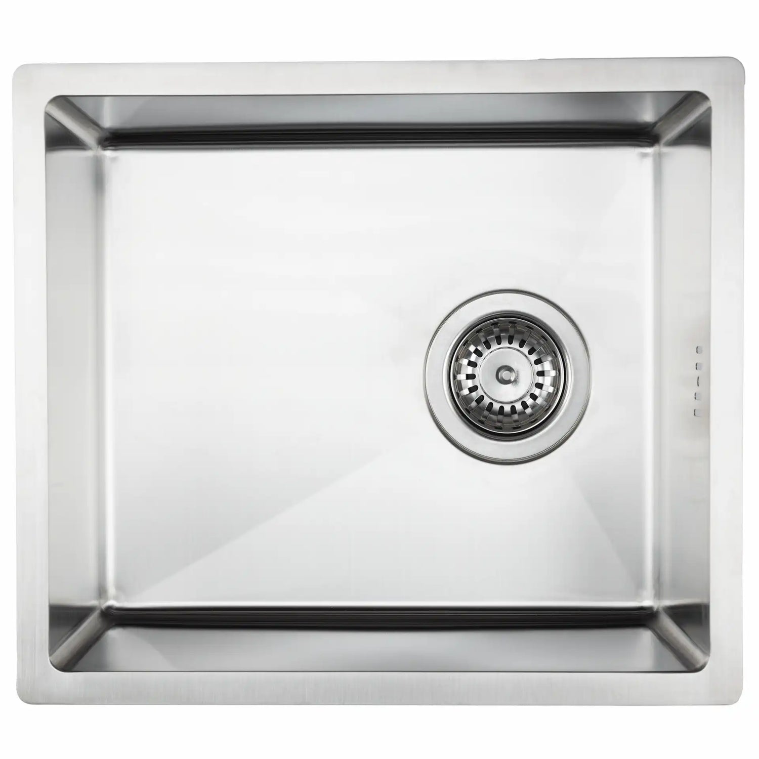 DK400 er en rustfri stål køkkenvask, uden hanehul, i et moderne firkantet design. De indvendige runde hjørner følger vaskens yderkant, hvilket giver et harmonisk design, ligeledes er de indvendige runde hjørner rengøringsvenlige.