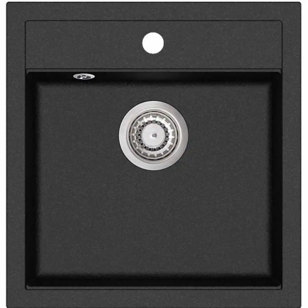 JUPITER 50 KOMPOSIT KØKKENVASK, SORT M/KROM AFLØB