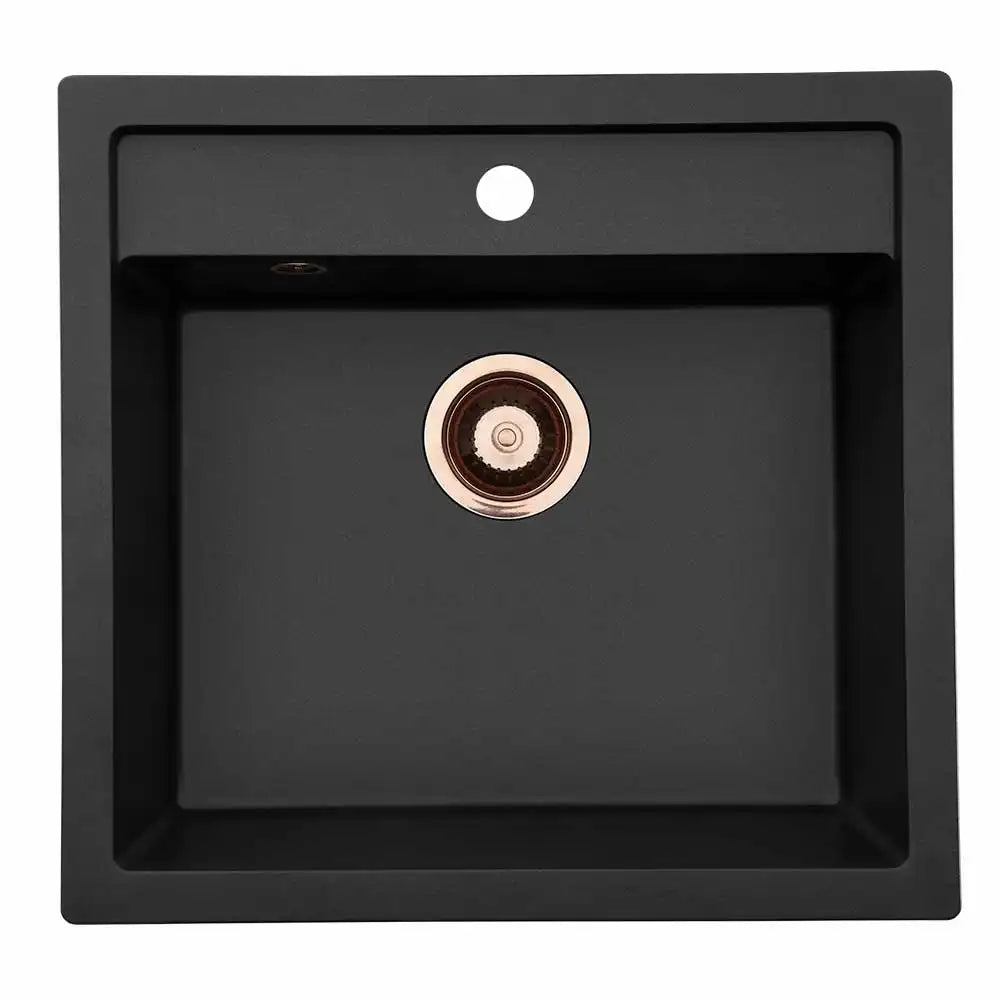 Jupiter 60 Komposit køkkenvask, Sort m/kobber afløb
