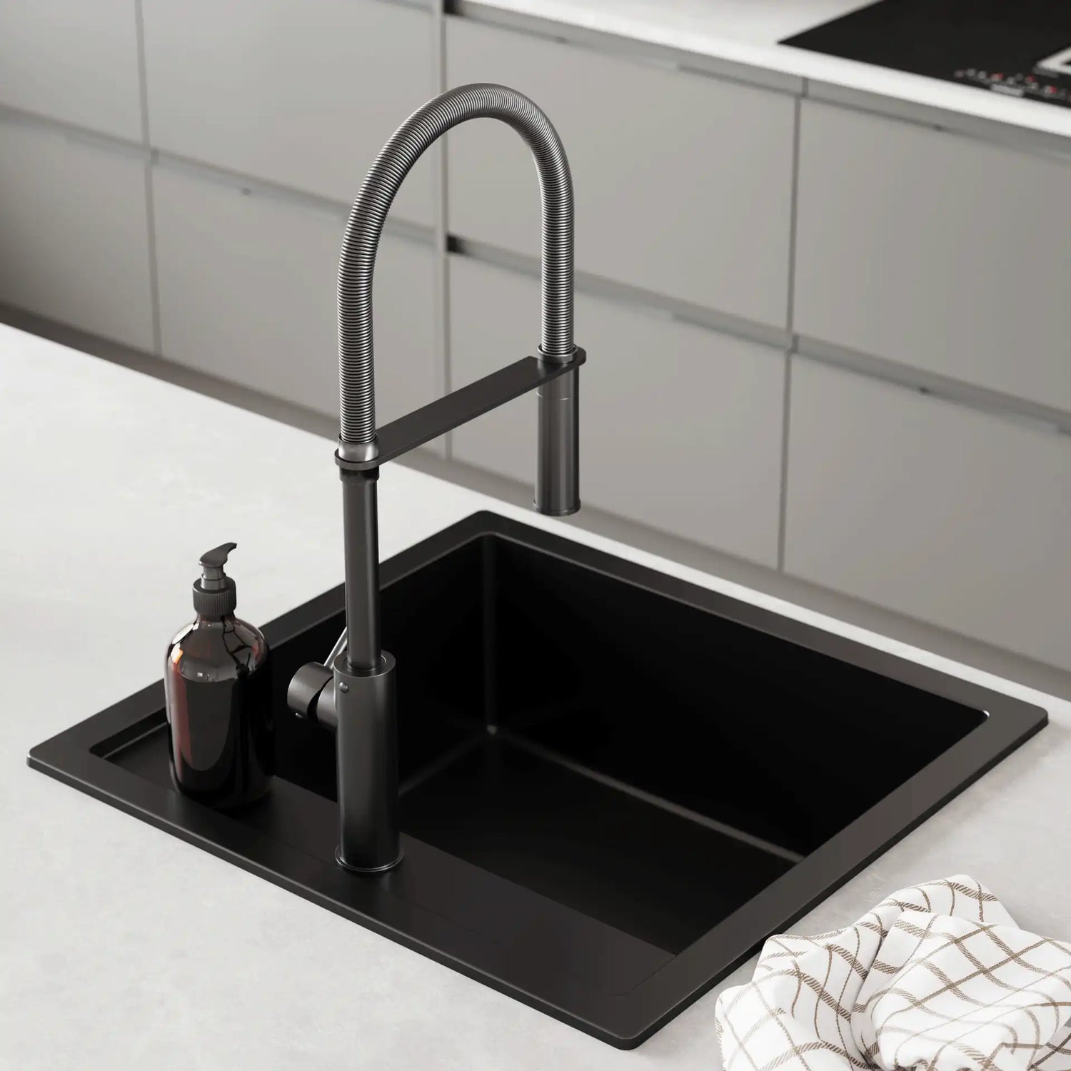 Jupiter 60 Komposit køkkenvask, Sort m/krom afløb
