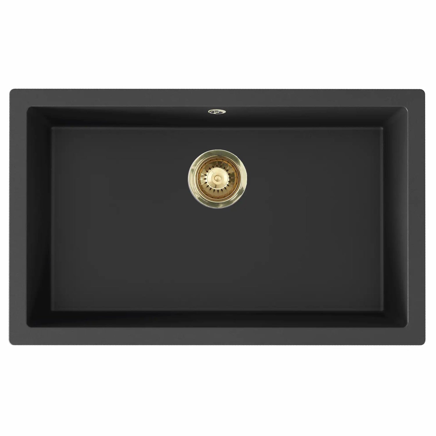 Jupiter 800 komposit køkkenvask, Sort m/PVD messing afløb