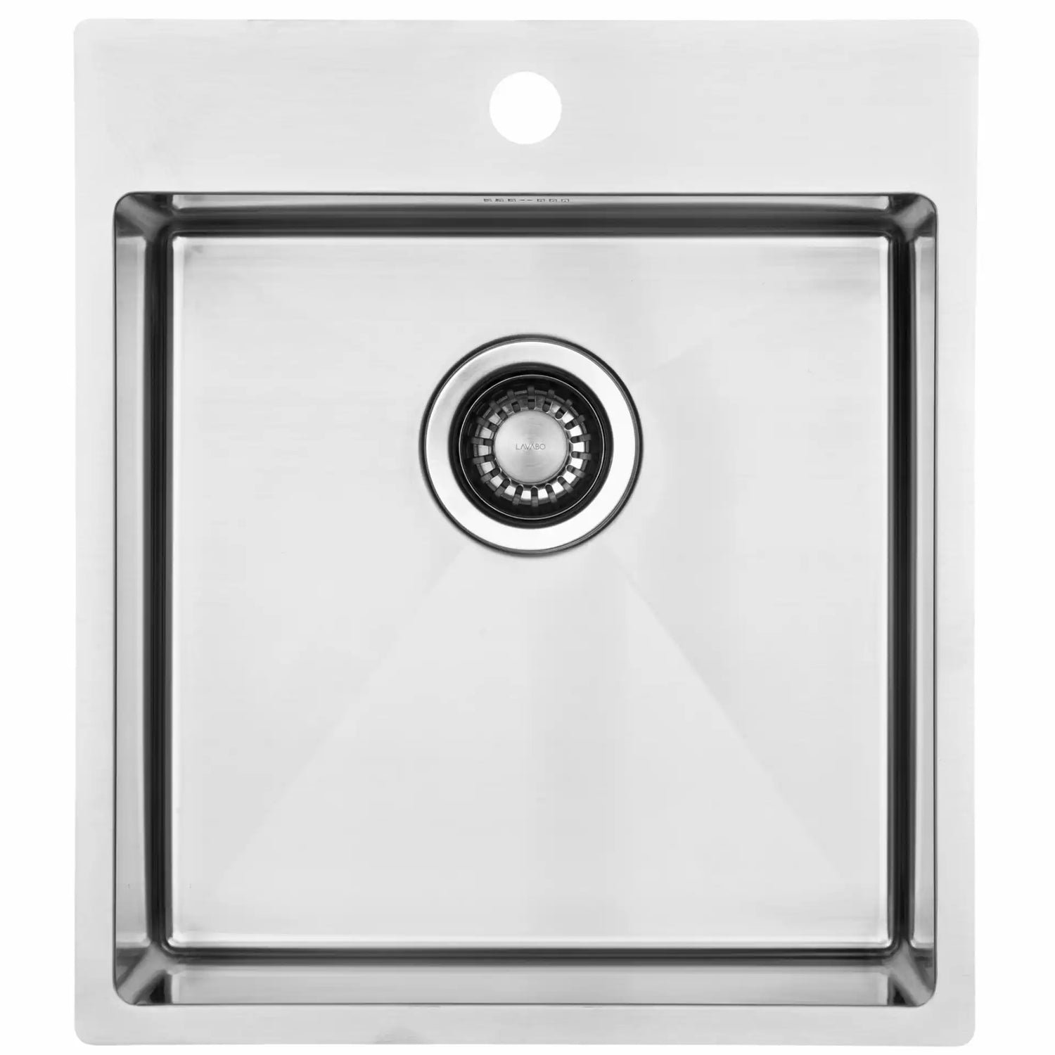 Rustfri stål køkkenvask, med hanehul, i et moderne firkantet design. De indvendige runde hjørner følger vaskens yderkant, hvilket giver et harmonisk design, ligeledes er de indvendige runde hjørner rengøringsvenlige.