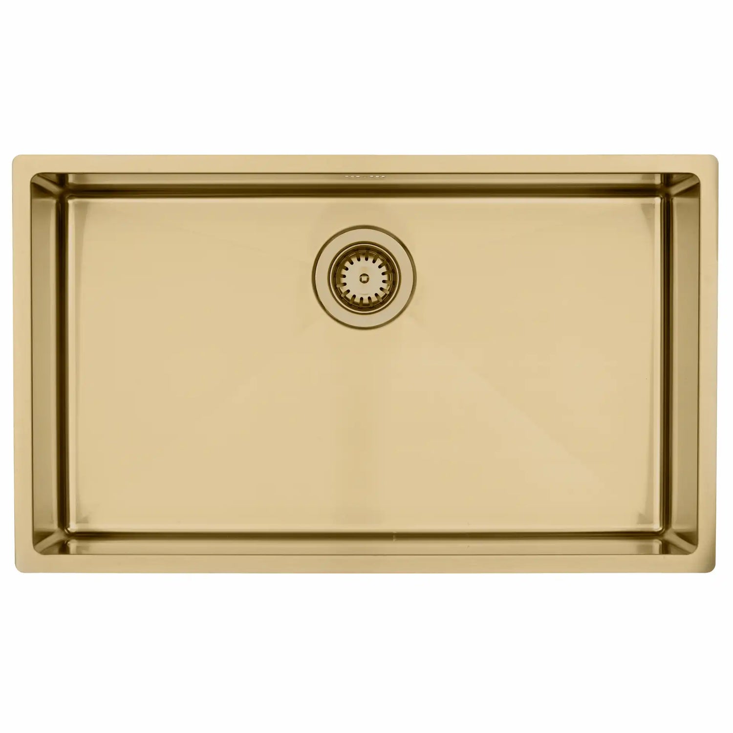 Køkkenvask, uden hanehul, i et moderne firkantet design. De indvendige runde hjørner følger vaskens yderkant, hvilket giver et harmonisk design, ligeledes er de indvendige runde hjørner rengøringsvenlige.