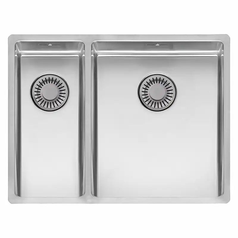 Rustfri stålvask, uden hanehul, 1½ kumme, i et moderne firkantet design med Comfort afløb.