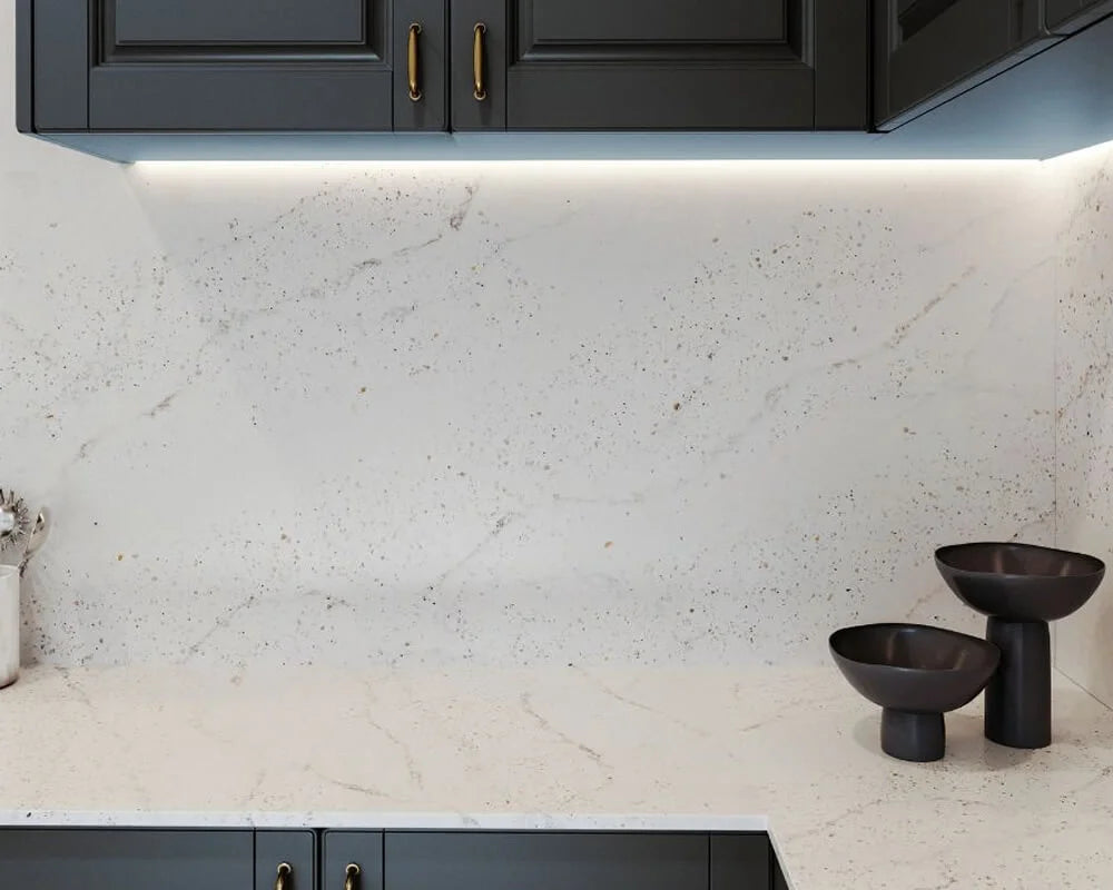 Kompositsten er et moderne kvalitetsmateriale lavet af ca. 94 % naturlig kvarts, blandet med harpiks og farvepigmenter. Materialet formes under højt tryk og varme, hvilket giver en ekstremt stærk plade med en helt lukket, hygiejnisk overflade.