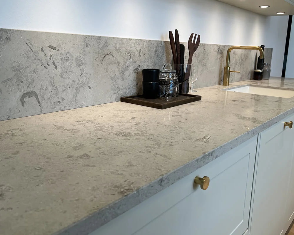 Med marmor og kalksten får du et 100 % naturmateriale, skabt gennem millioner af år, og som tilfører dit køkken en helt særlig karakter. Hver plade har sin egen struktur, farvespil og unikke udtryk – ingen to er ens. Materialet udvikler en smuk patina over tid og fortæller historien om liv og aktivitet i køkkenet. Ridser, mærker og små skjolder bliver en naturlig del af overfladens personlighed og charme.