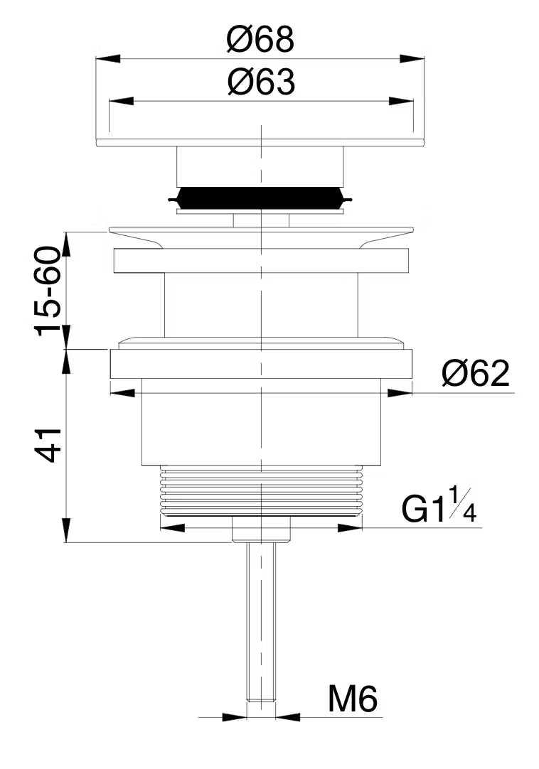 Bundventil til vaske både med og uden overløb - Universal, pop-up, rund top