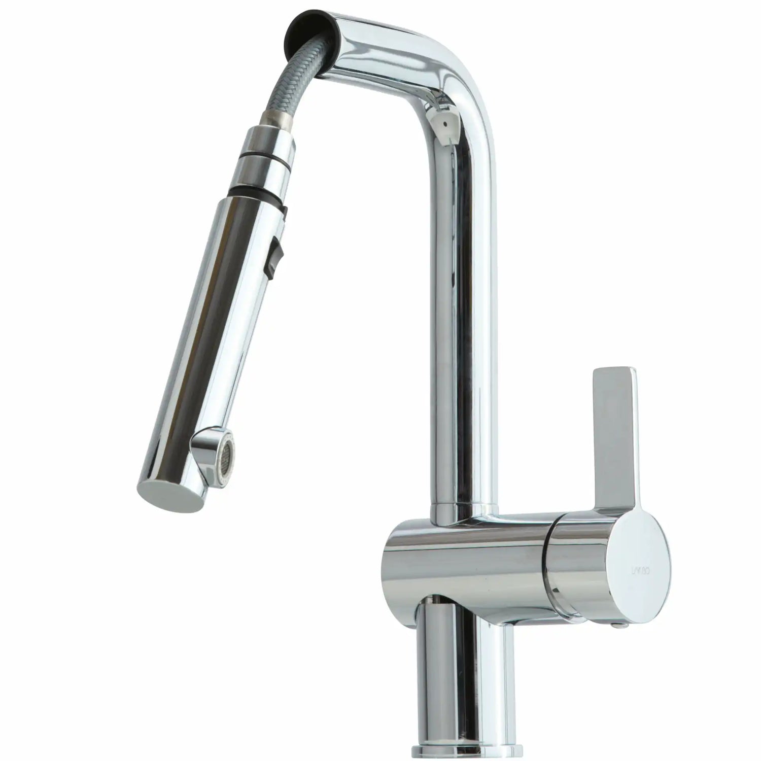Kubus 285 er et køkkenarmatur med en praktisk udtrækkelige tud/dyse som letter rengøringen af f.eks. bageplader og køkkenvasken. Armaturet er i et moderne design hvor de lige linjer og det elegante "kantede" greb fuldender formsproget som passer perfekt til den minimalistiske skandinaviskes indretnings stil.