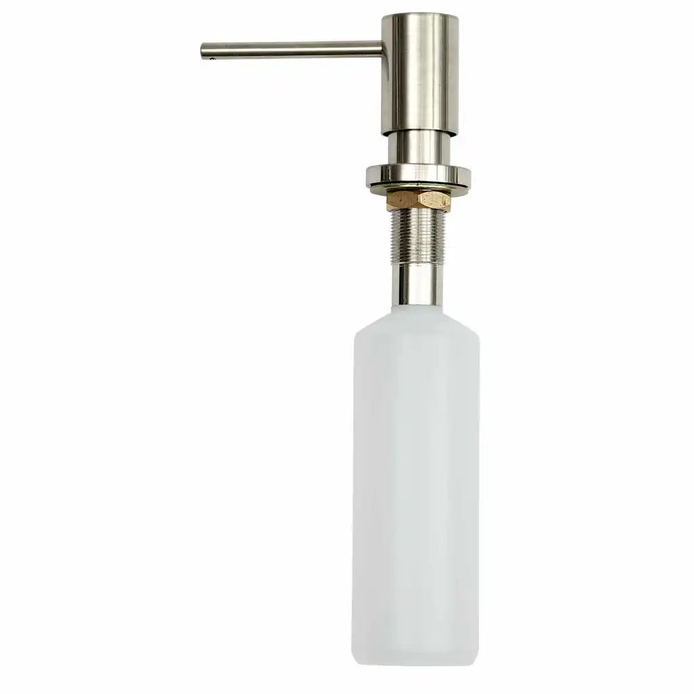 Sæbedispenser til montering i køkkenvaskens bagflange eller i køkkenbordpladen.