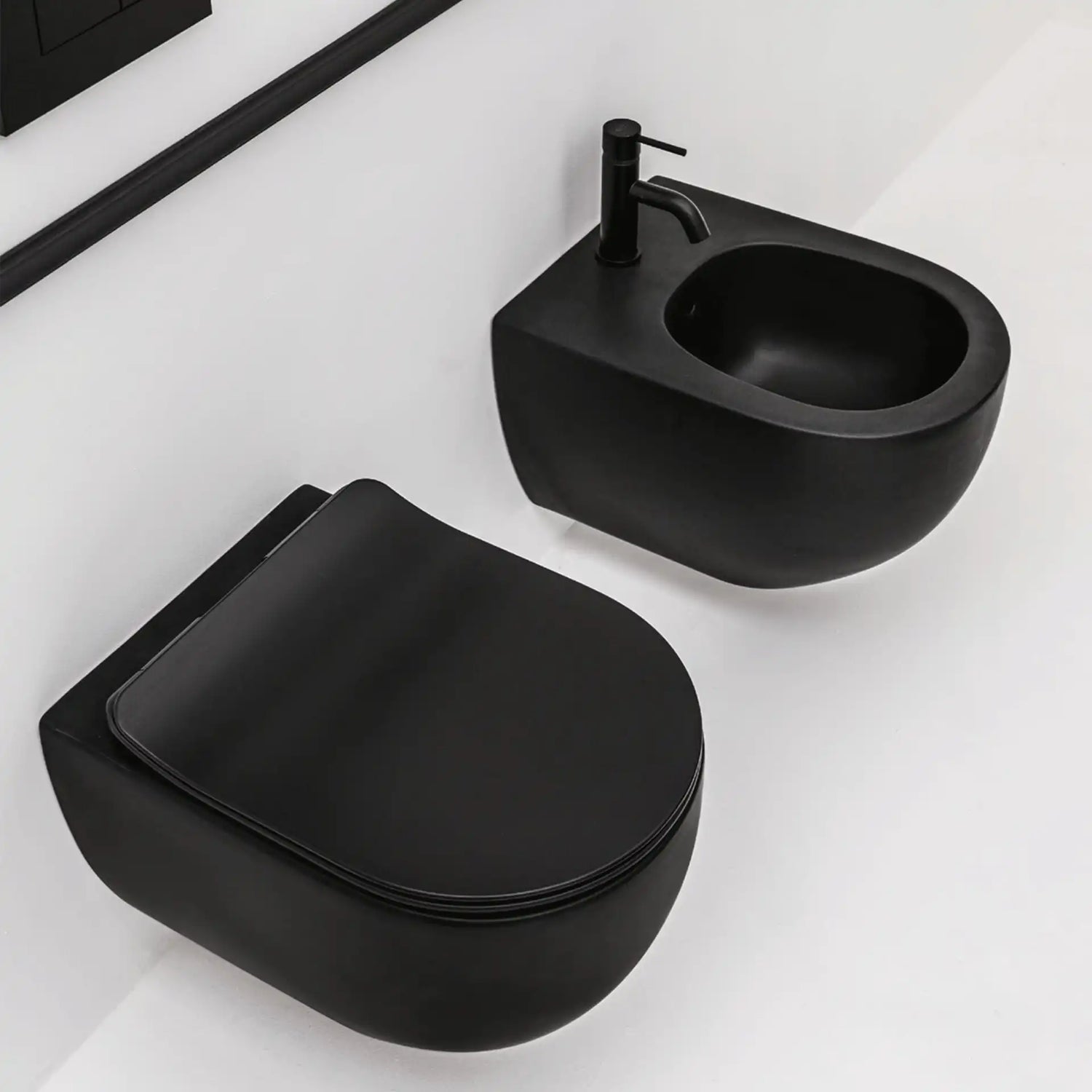 Dette toilet er fremstillet i mat sort, dobbelt glaseret porcelæn og udstråler en luksuriøs stemning.