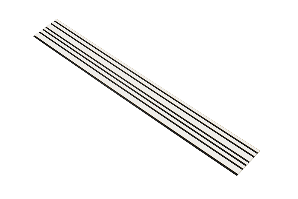 Her får du et akustikpanel med hvidmalet MDF og brun filt – en tidløs kombination, der tilfører rummet varme og karakter. Panelets lameller i varierende bredder giver en flot struktur, samtidig med at lydniveauet dæmpes.