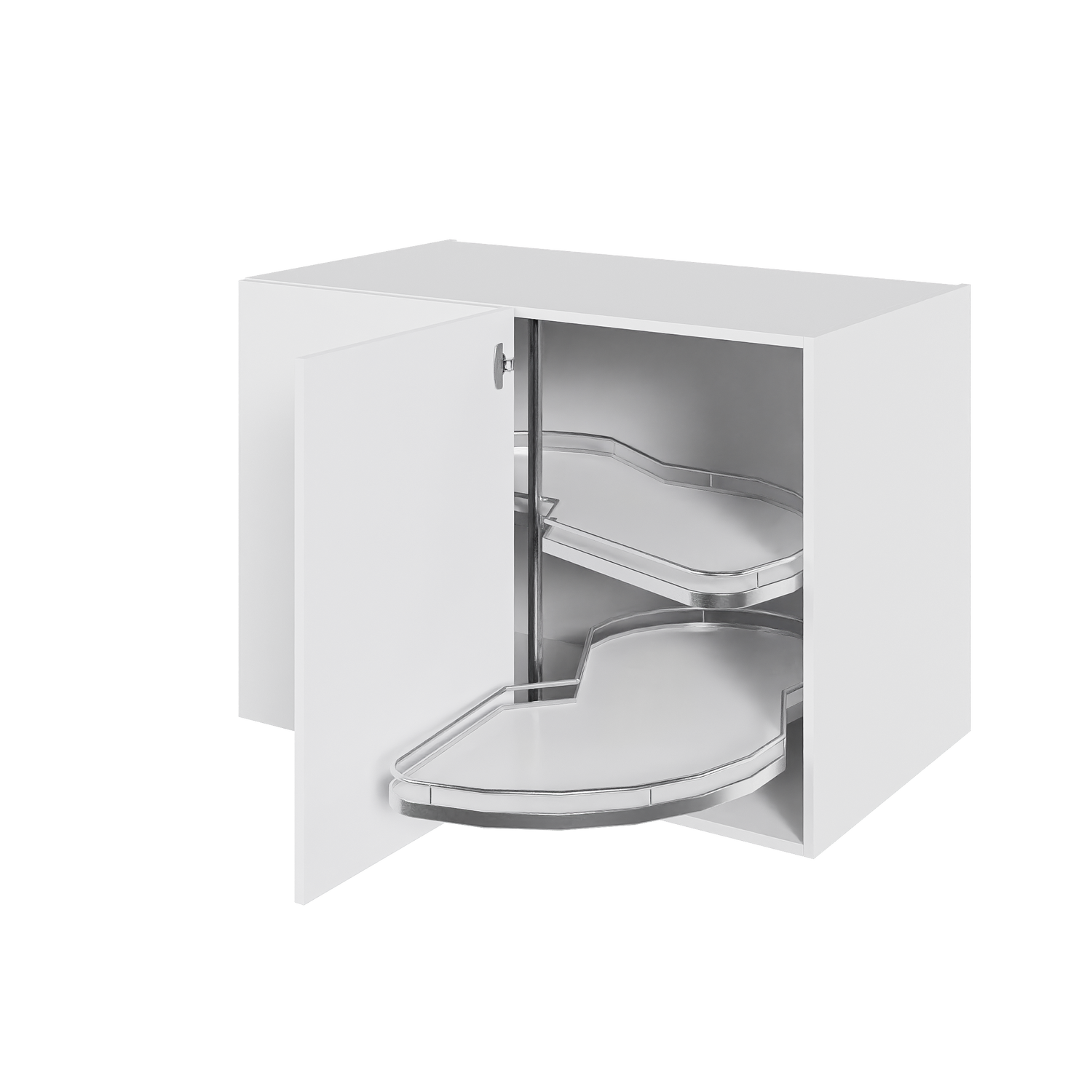 Et praktisk og rummeligt hjørneskab med Le Mans karrusel, der giver dig nem adgang til hele skabets opbevaringsplads. Le Mans-systemet sørger for, at hylderne elegant svinges ud af skabet, så du nemt kan nå alt indholdet – perfekt til gryder, pander og køkkentilbehør.